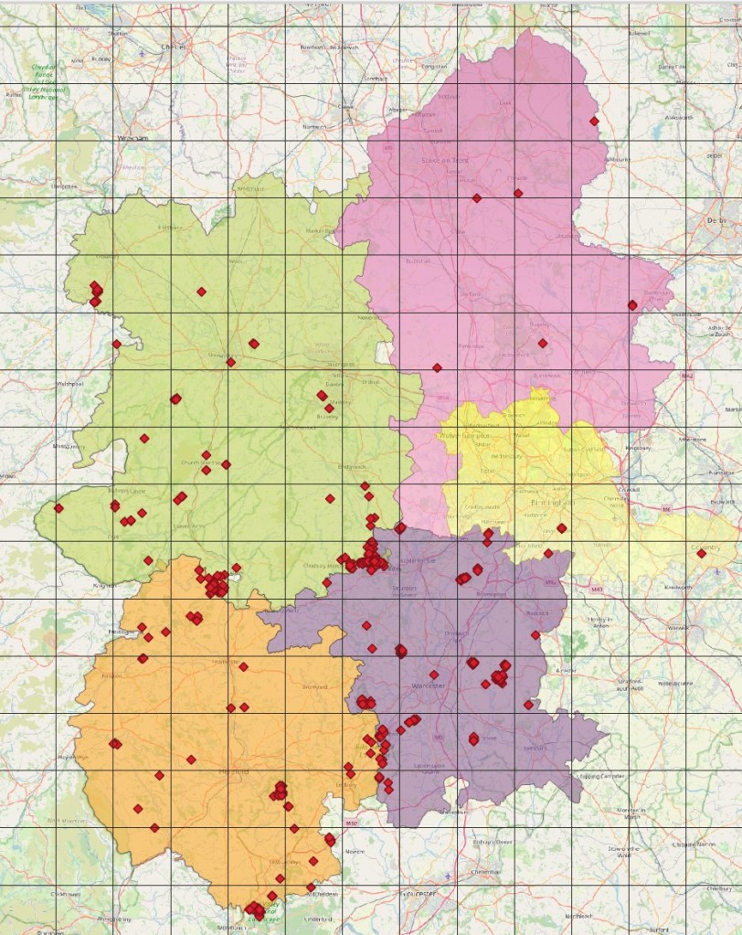 - Hotspots: Wyre Forest. Mortimer Forest, Wigmore Rolls, Shobdon Hill, Coppett Hill, Trench Wood, Grafton Wood.