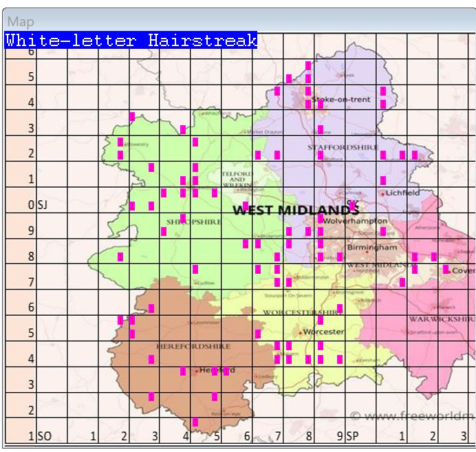 - National Status: Scattered colonies throughout England and Wales. Suffered major range contraction with Dutch Elm disease. Population trend 10 years -77%; since 1976 -96%.