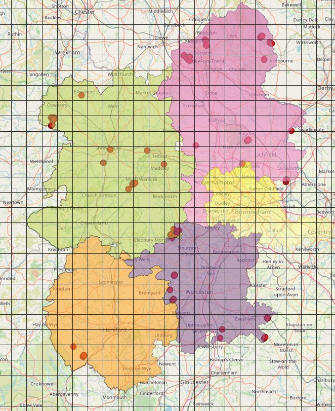 - Hotspots: Wyre Forest and Penny Hill Bank in Worcestershire, Oswestry Hills in Shropshire, Stoke-on-Trent area and Cannock Chase in Staffordshire and brownfield sites in the Black Country. Sites: Llanymynech Rocks; Lea Quarry; Baggeridge Country Park.