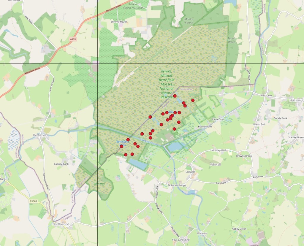 - Hotspots: See above. Site: Whixall Moss.