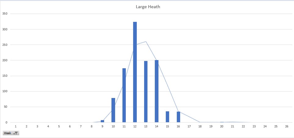 Caterpillar Food Plant:The main foodplant is Hare’s-tail Cottongrass (Eriophorum vaginatum). Common Cottongrass (Eriophorum angustifolium) and Jointed Rush (Juncus articulatus) are also used.