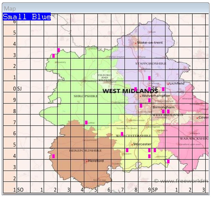 Small Blue has been absent from the West Midlands for many years. There have been several sites near the Worcestershire/Gloucestershire border.
