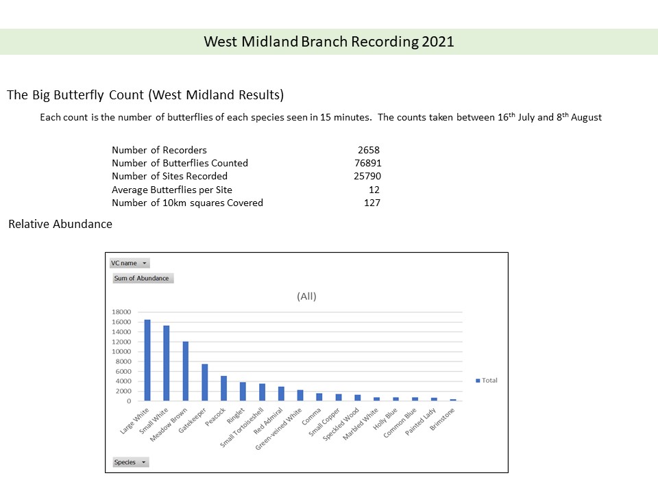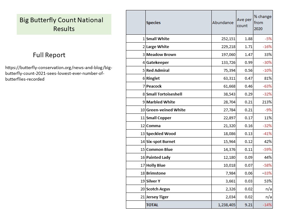 Great support from members and general public for this project. The results for 2021 are rather disappointing showing 20% reduction compared with last year. As British recorders we can always blame the weather. Full National report