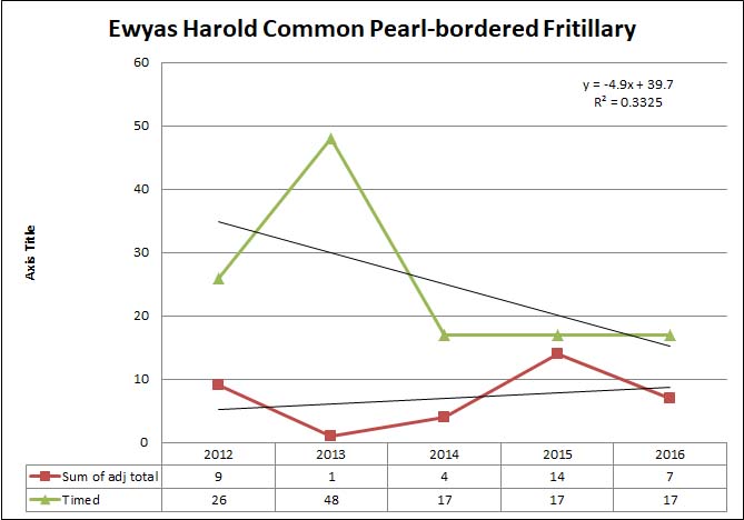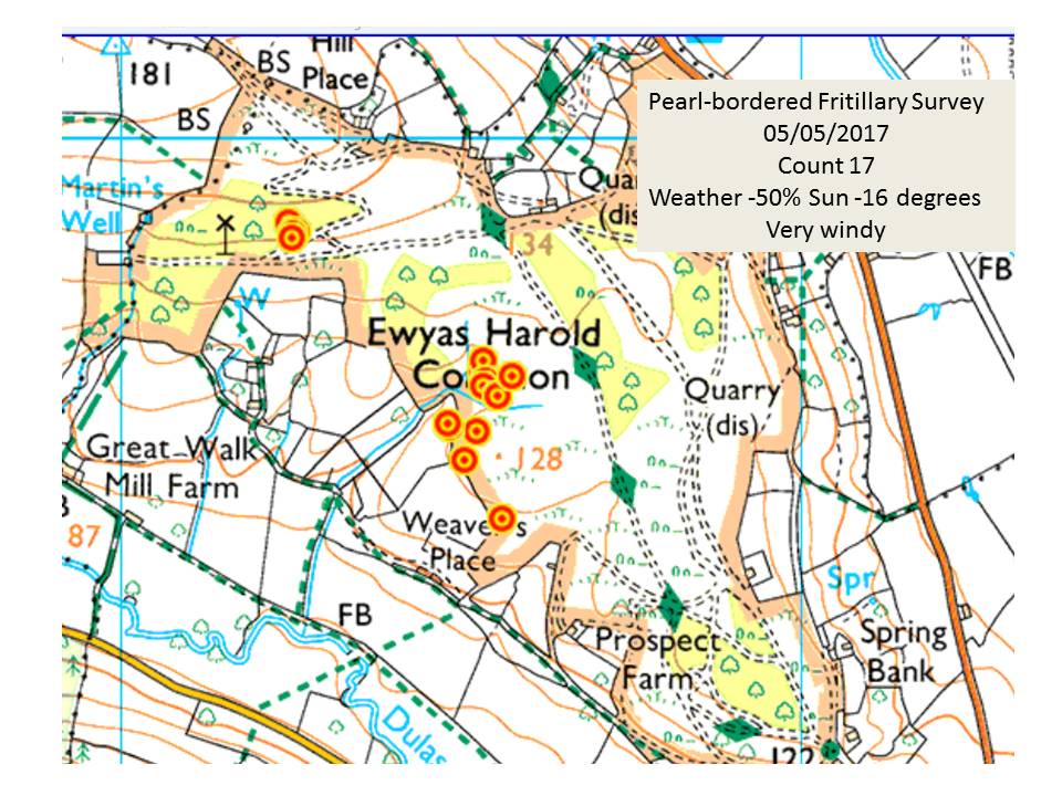 Ewyas Harold Meadows are a series of flower rich meadows gifted to BC by Ian Hart. The meadows are adjacent to Ewyas Harold Common a bracken and scrub covered heath. This is a stronghold for one of our declining species – Pearl-bordered Fritillary. There is also a small colony of Grizzled Skipper and Dark Green Fritillary.