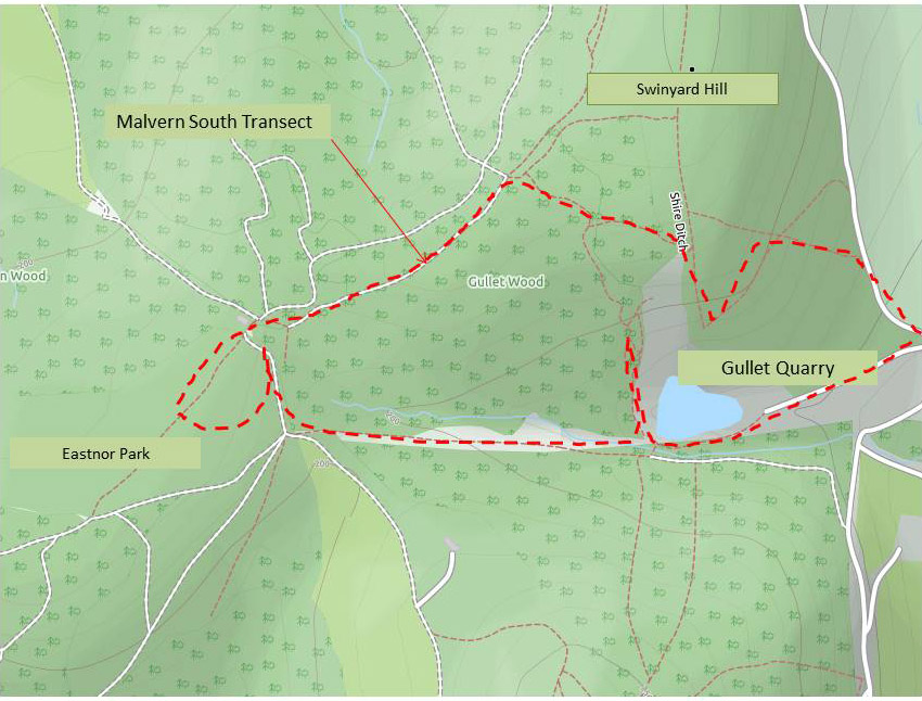 This site includes the part of the hills from Broad Down in the north to Holly Bush in the south. Including Eastnor Park, Mid-Summer Hill and the Gullet.