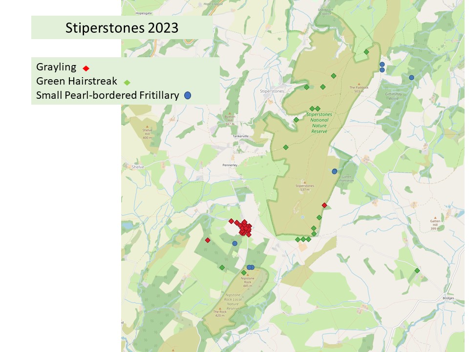 The Species: Grayling, Green Hairstreak and Dark Green Fritillary.